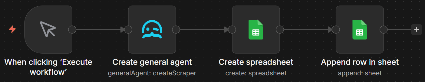This workflow is designed as a foundational building block. By saving the scraper ID and URL to a sheet, you can later reference those values to build a full end-to-end scraping pipeline without needing to manually look up or re-enter scraper details.