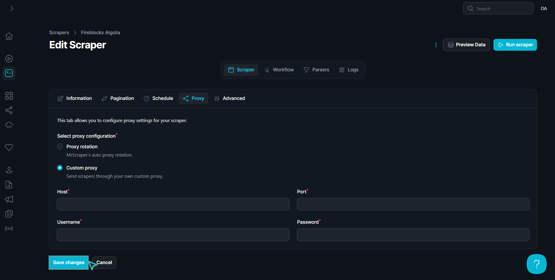 To use the scheduler feature, follow the steps below:- Select the Custom Proxy.